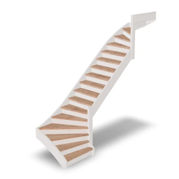 Alleen trappen waarbij de treden volledig zijn ingesloten tussen de wangen kunnen op maat worden gemaakt.